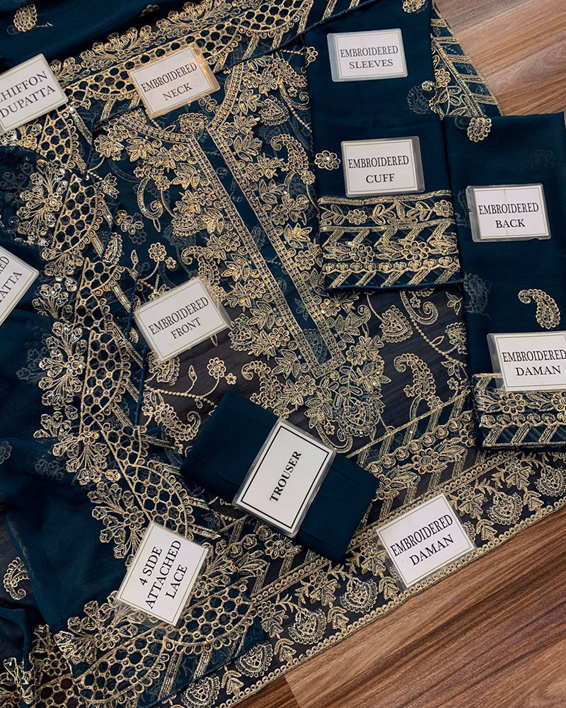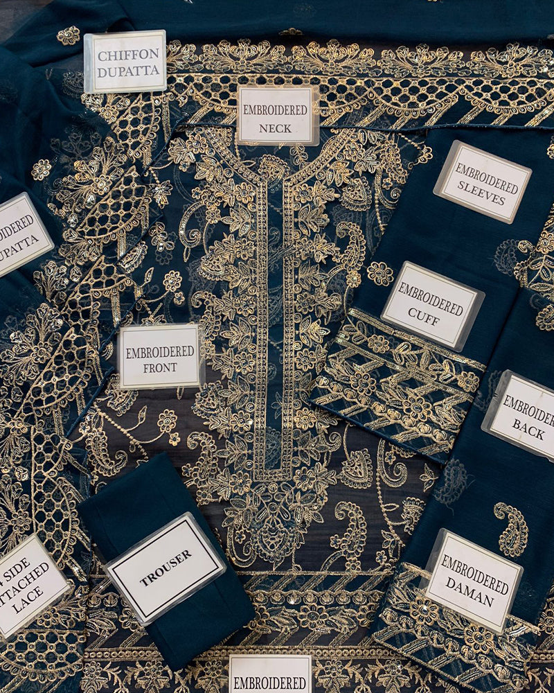Dupatta (Cationic Chiffon): Heavy embroidered with 4-side embroidered borders attached