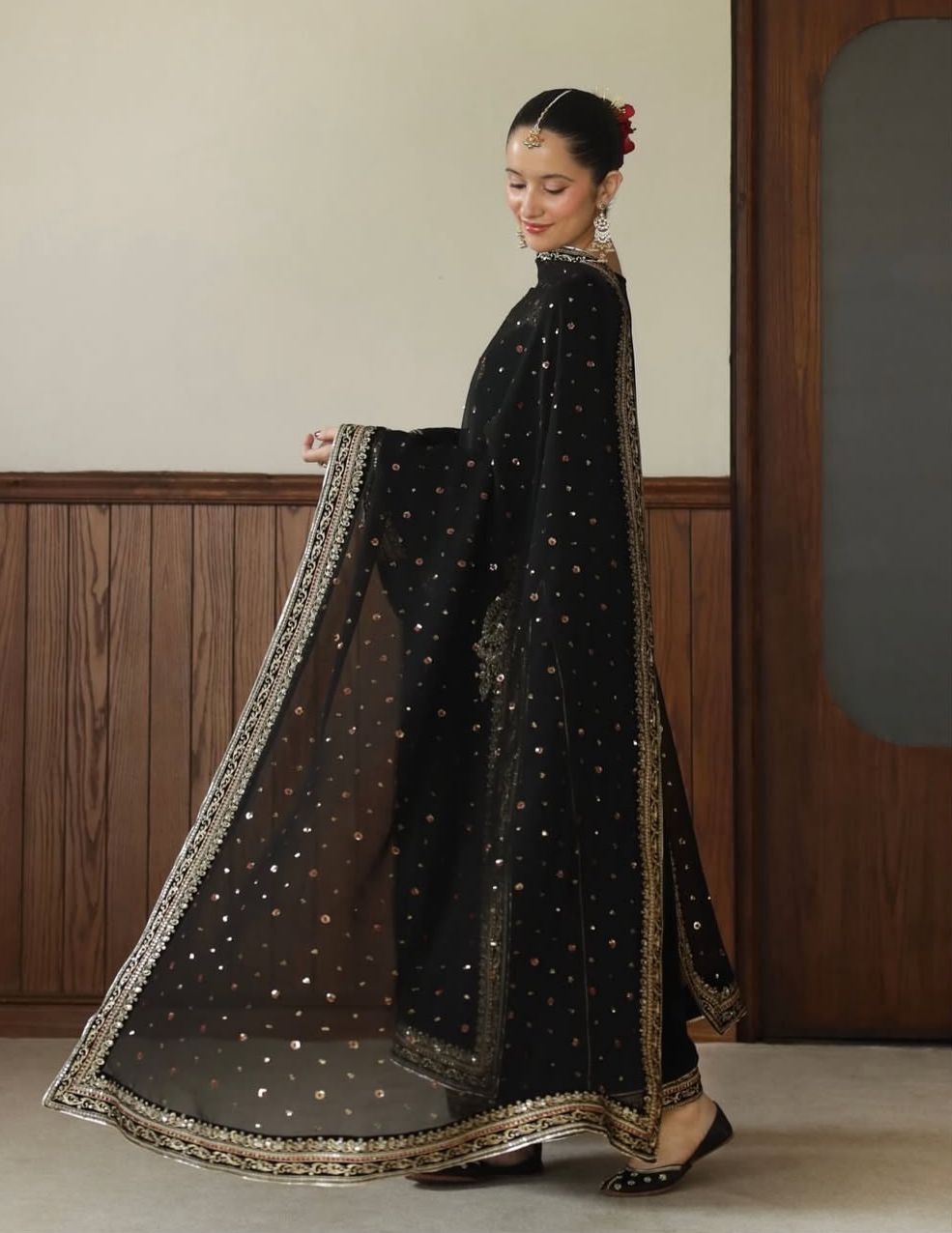 Dupatta: Chiffon fully heavy embroidered spengle work dupatta with pallu border and 4-sided ready-to-wear finishing
