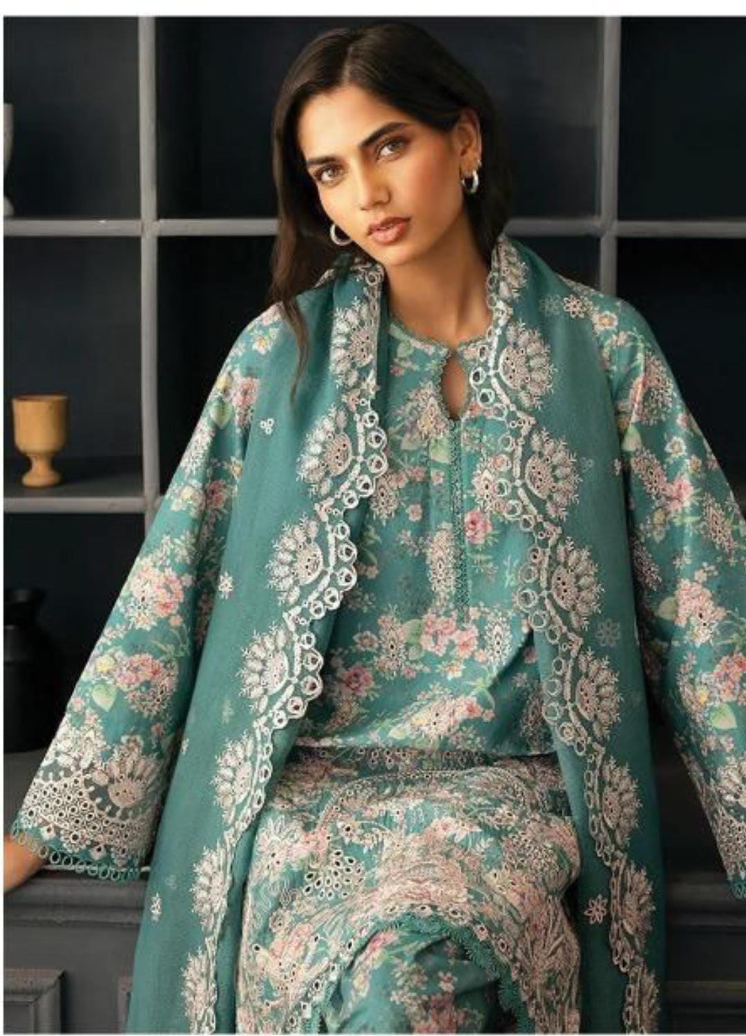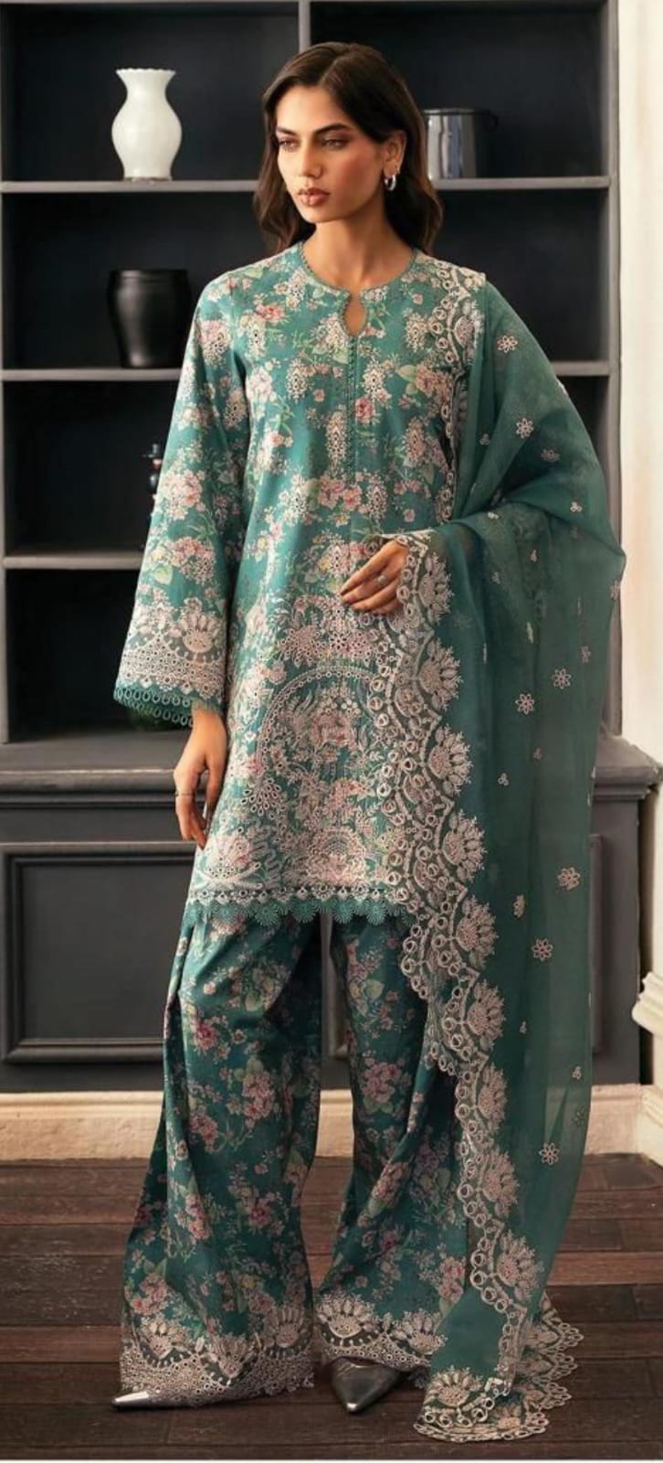 Refresh your wardrobe with this elegant Afrozeh luxury lawn ensemble, beautifully crafted with heavy on-fabric embroidery and delicate boring chikankari.