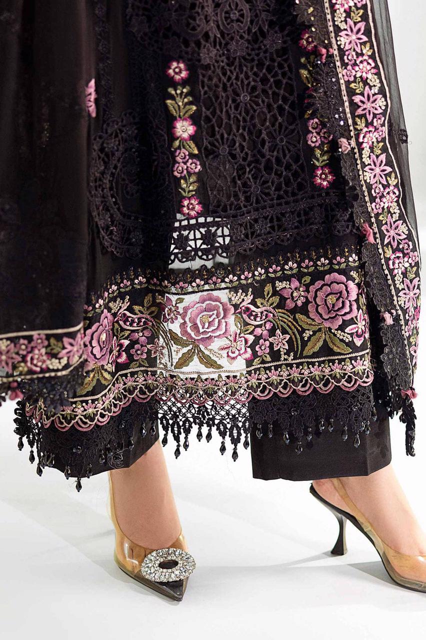 Step into timeless elegance with this Mari B unstitched 3-piece chiffon ensemble.