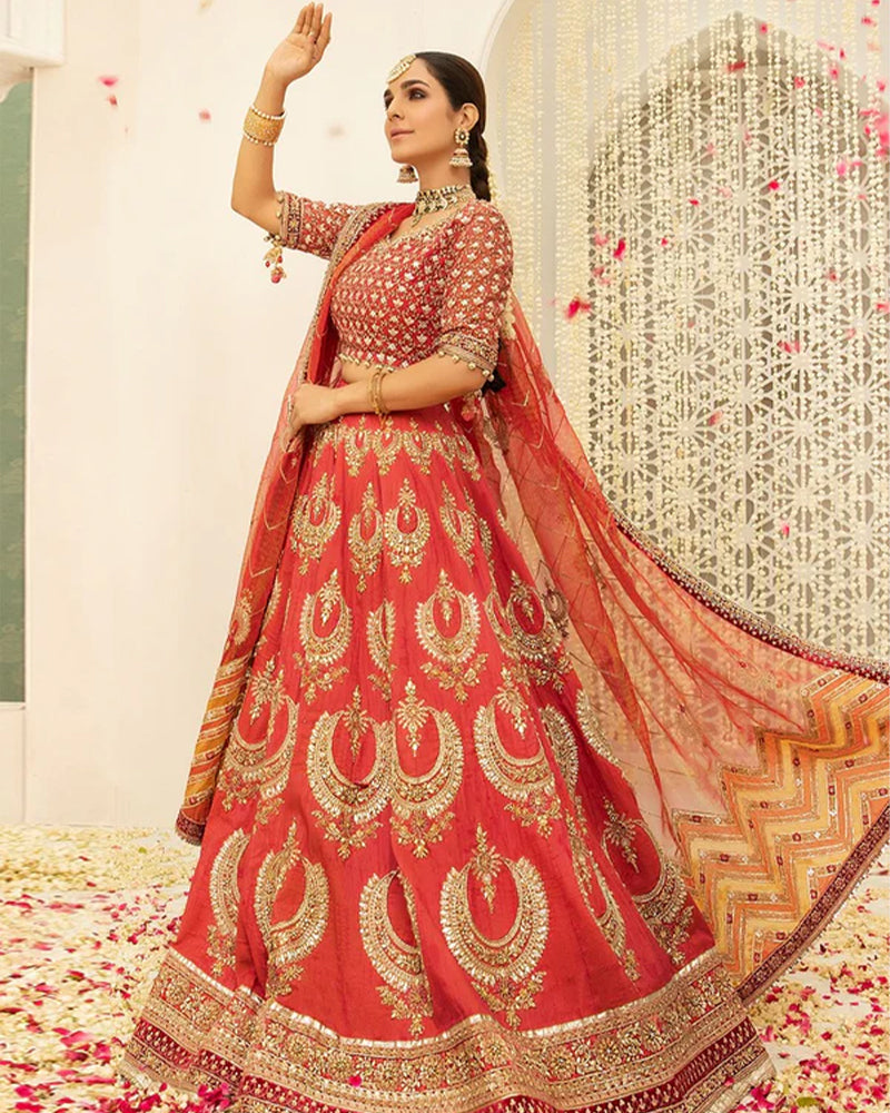 Maria B Couture Coral Hand Embellished Bridal Ensemble