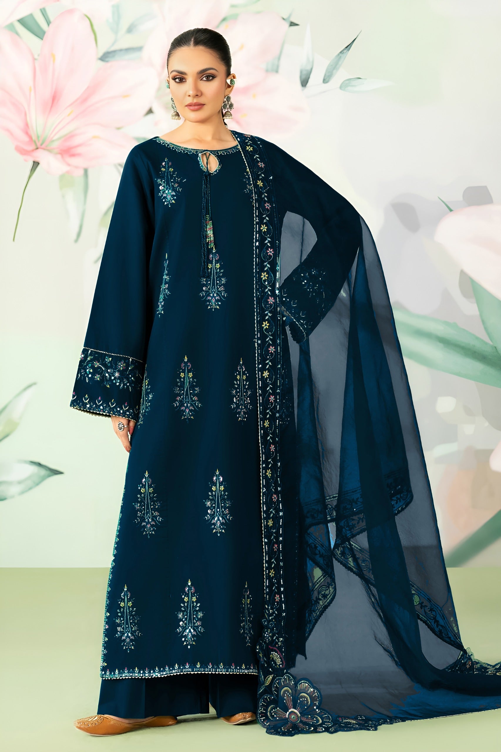 A graceful winter 3-piece ensemble crafted in premium Dhanak fabric.