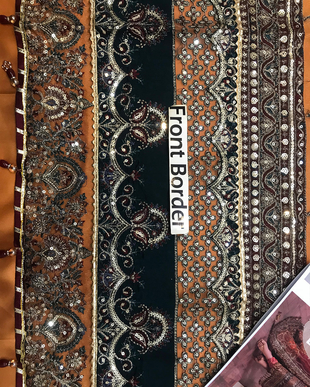 Front Border: Heavy embroidery with adda work, hanging tussles & cutwork detailing
