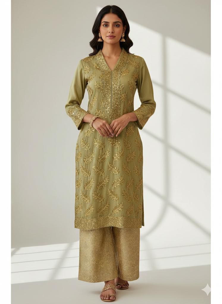 A refined ensemble designed for elegance and festive charm — the Branded Fancy 2-Piece Collection combines delicate sequence embroidery on premium Maysoori fabric with the richness of pure Banarasi silk trousers. Perfect for semi-formal gatherings, dinners, or special occasions, this set offers both comfort and luxury in one effortlessly stylish outfit.