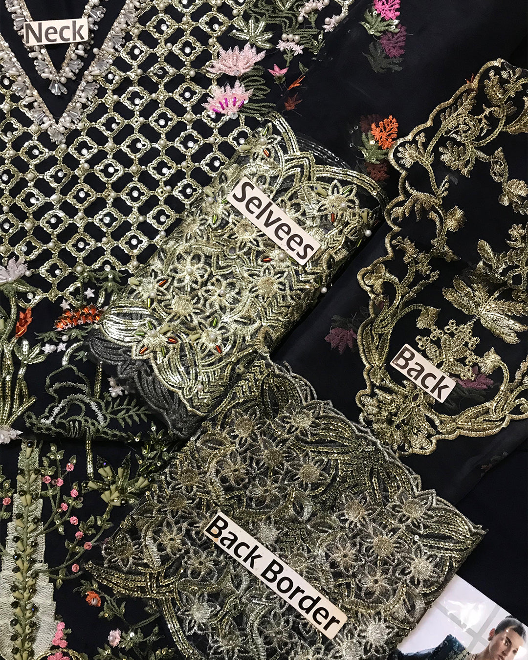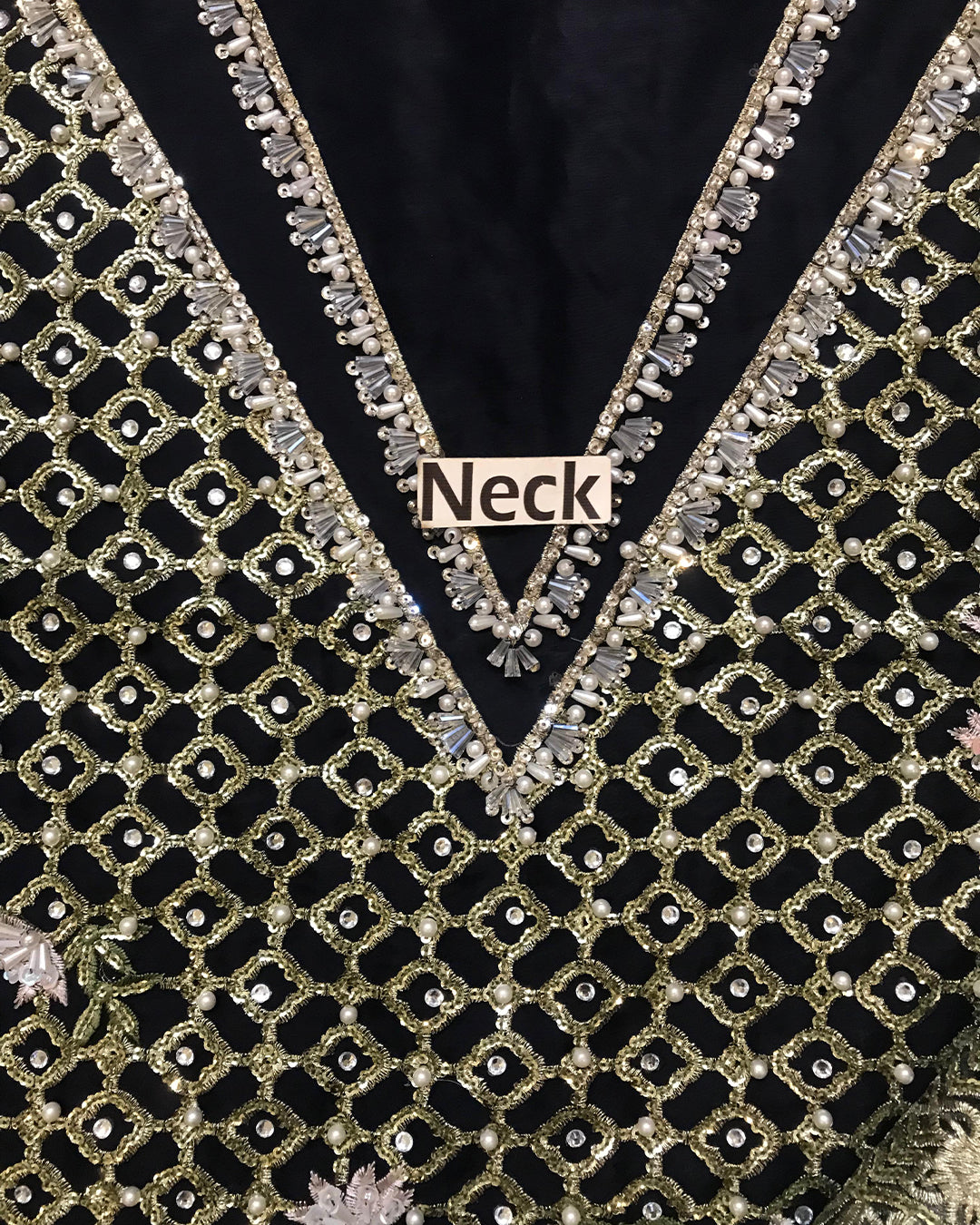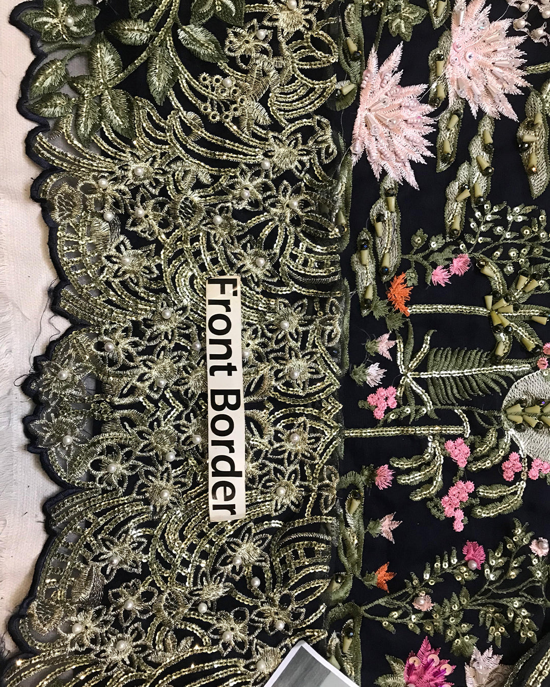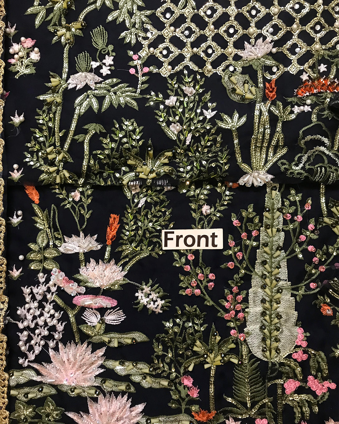 Heavy embroidered sleeve cuffs on fabric with adda work