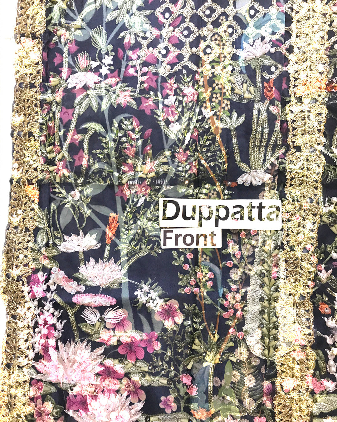Printed silk dupatta with 4-side cutwork border applique (ready-to-wear style)