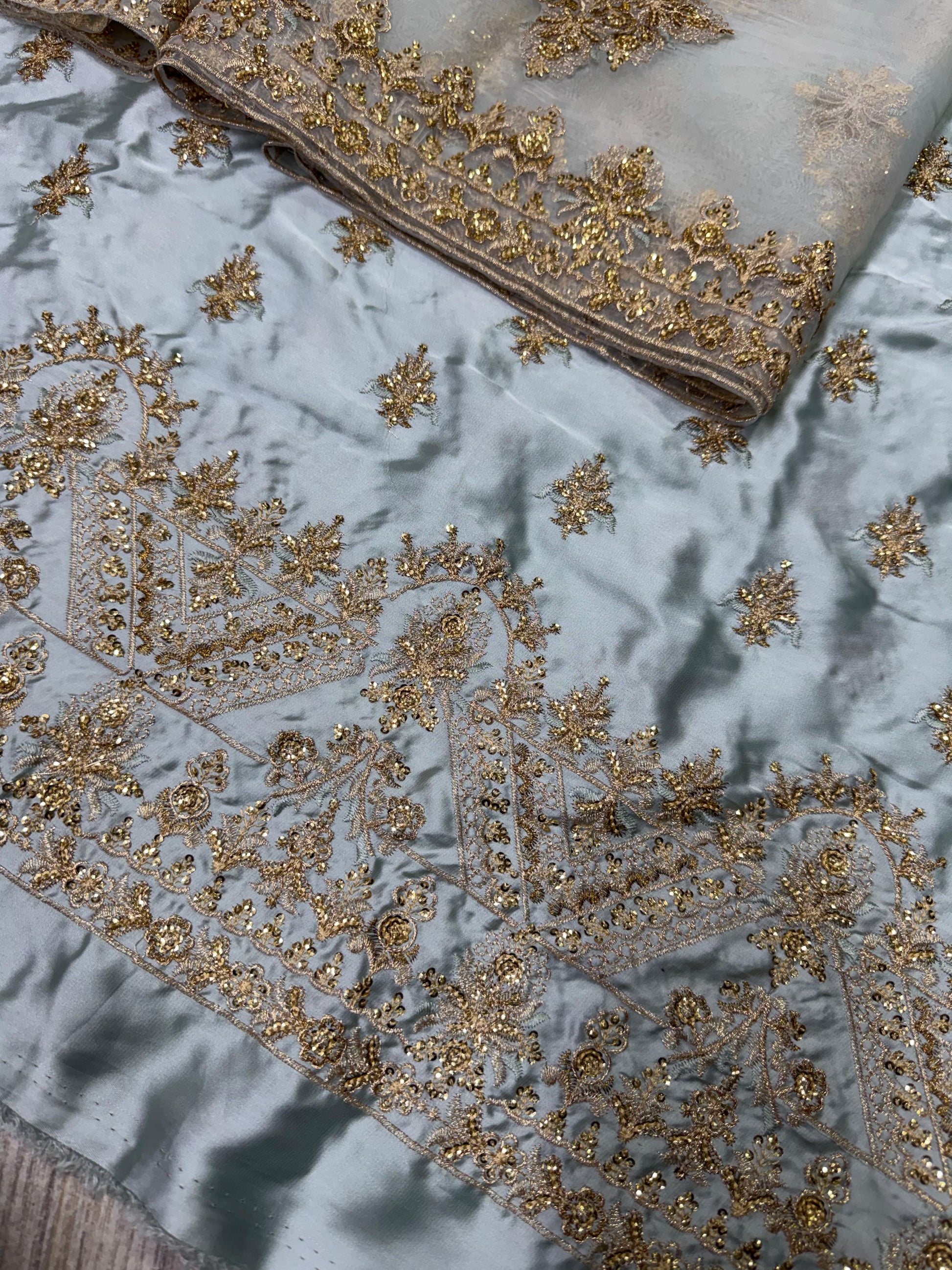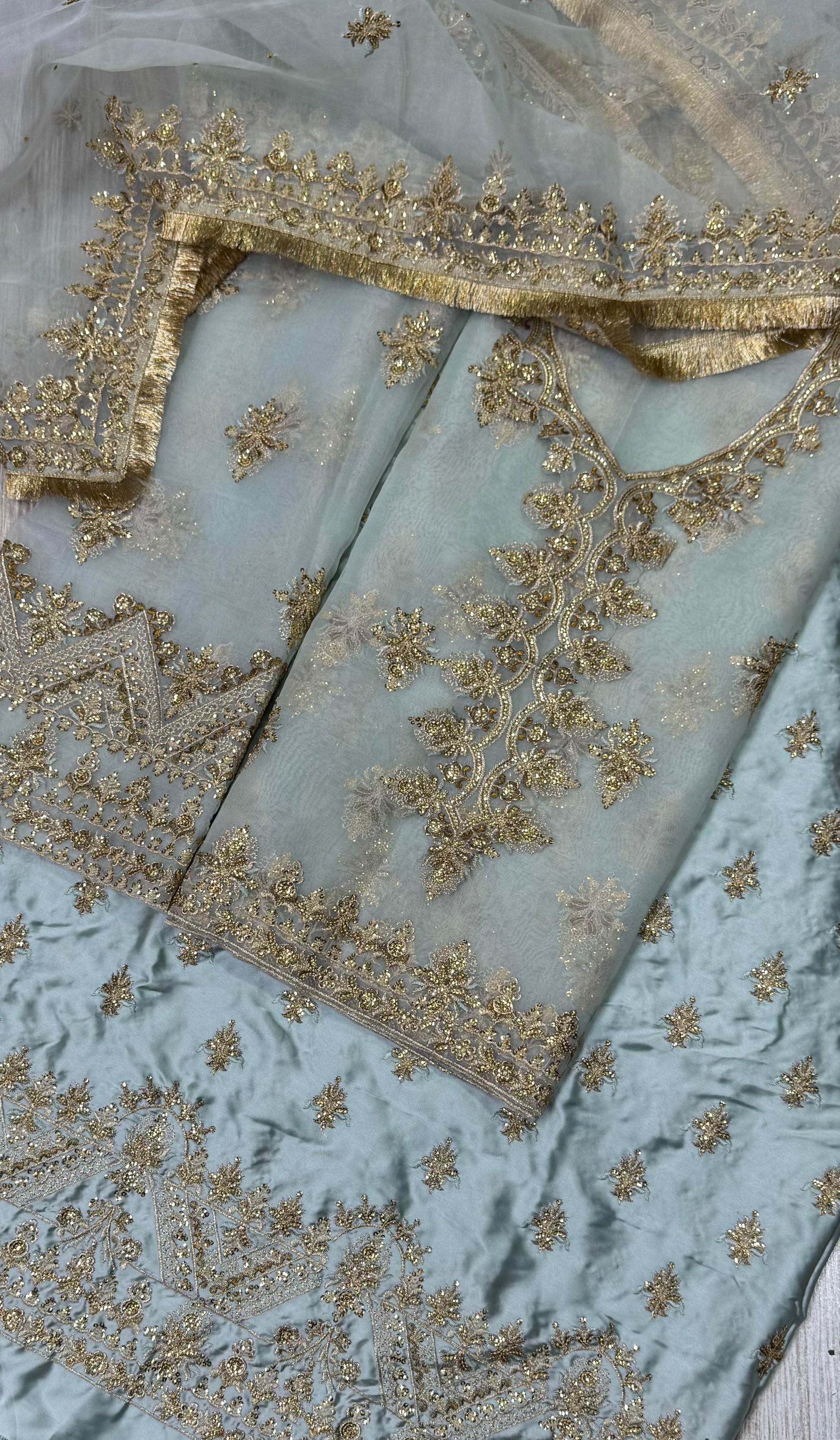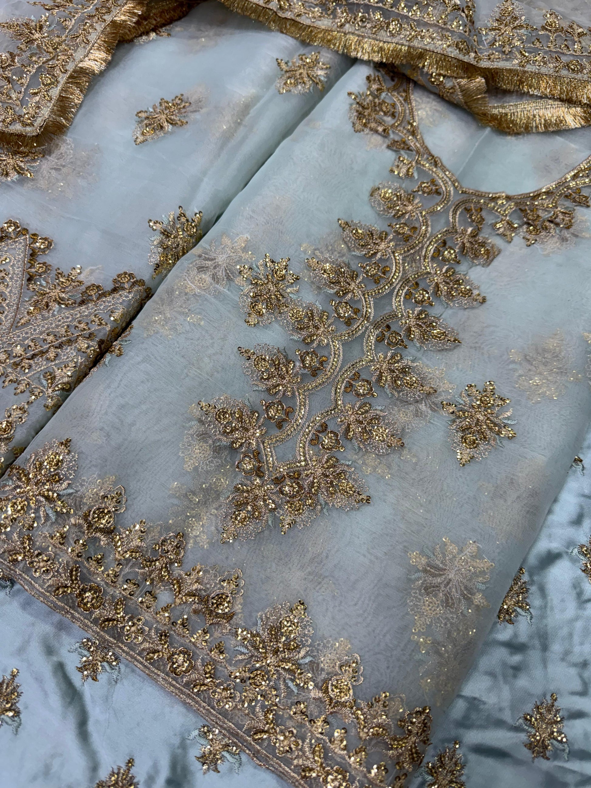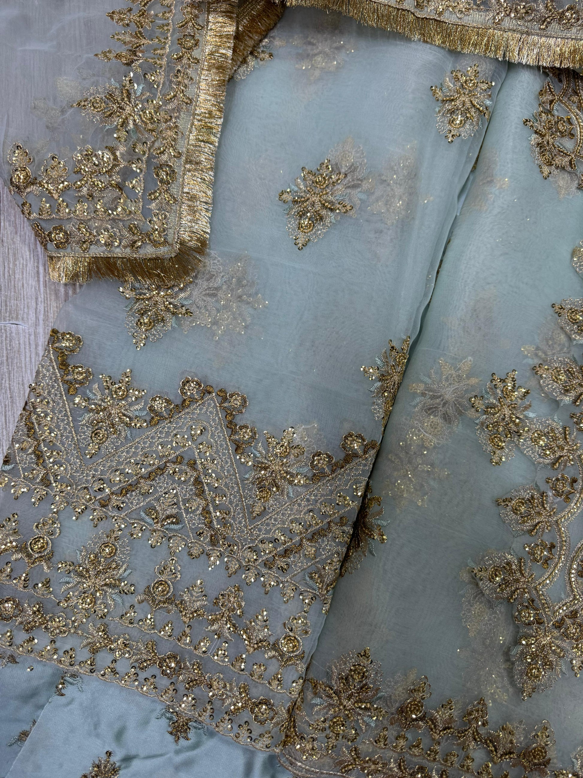 Zari & sequence fully embroidered front crafted with intricate detailing for a true bridal luxury look.