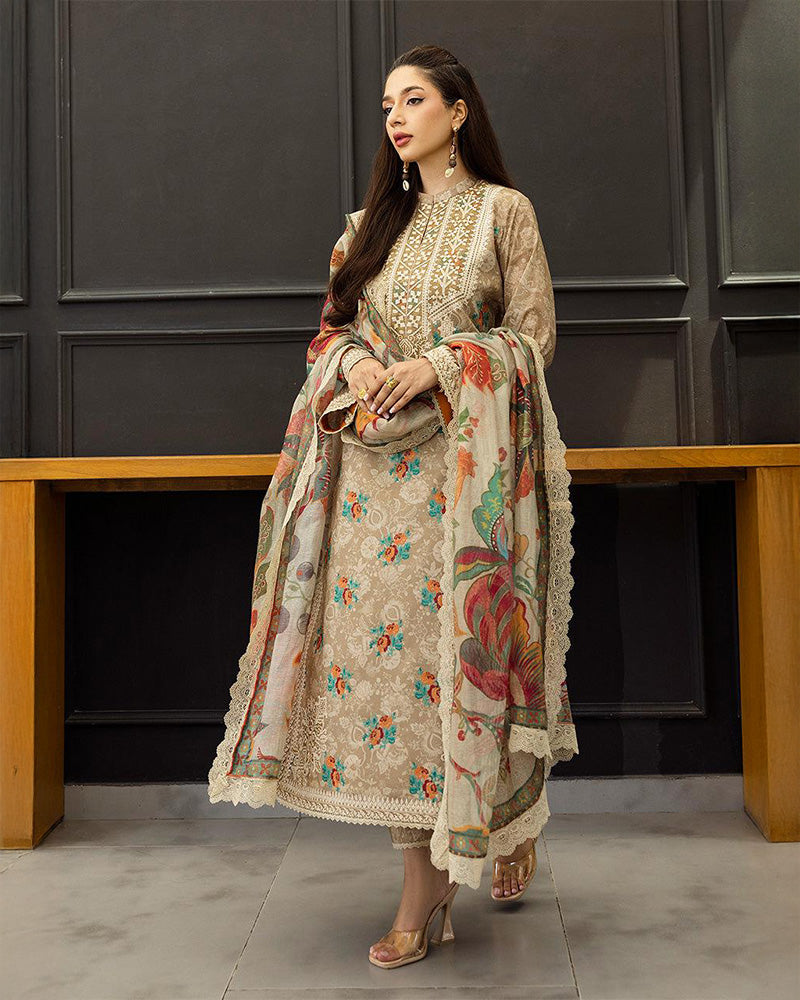 Premium quality printed lawn with intricate 4-suti karahi embroidery