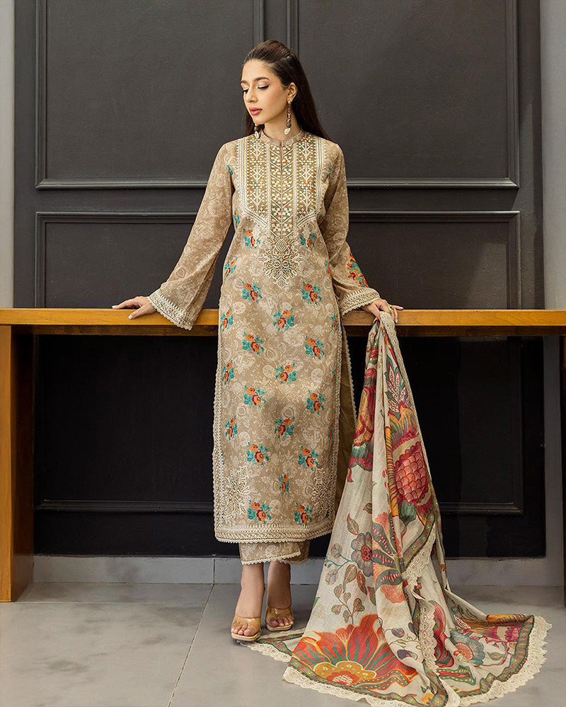 The Zainab Chottani Summer Bloom Lawn Collection 2025 celebrates effortless elegance with a touch of sophistication. Crafted with soft printed lawn fabric and adorned with exquisite embroidery, this unstitched 3 piece suit is a perfect choice for summer events, casual gatherings, and festive occasions. Its chiffon dupatta adds a graceful flow, making every look timelessly chic.