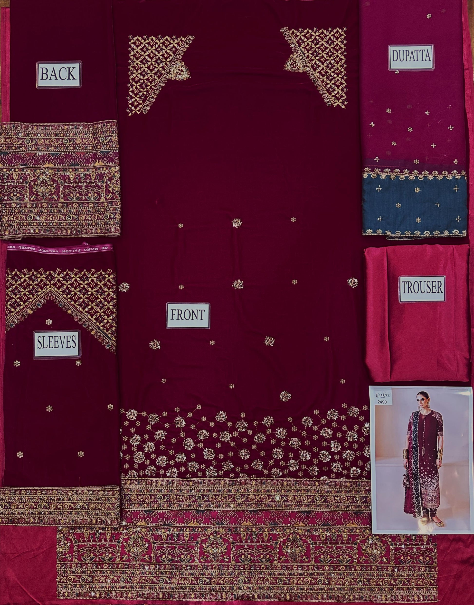 A premium winter ensemble designed for elegance and comfort. This luxurious velvet suit features intricate embroidery, rich textures, and a beautifully detailed chiffon dupatta, making it an ideal choice for formal events, gatherings, and festive occasions. High-quality fabrics and fine craftsmanship give this outfit a graceful, regal look perfect for the winter season.