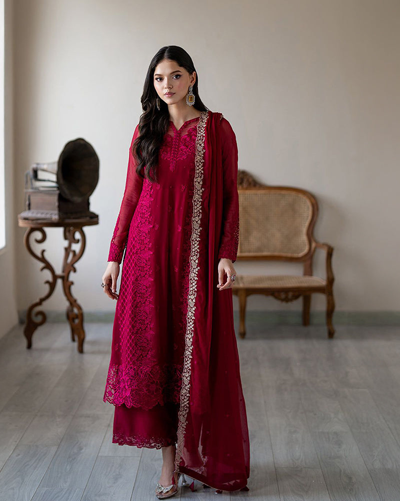 Discover timeless elegance with the Azure Chiffon Embroidered Collection. This unstitched 3-piece chiffon suit is crafted with premium embroidery and luxurious fabrics, making it the perfect choice for festive occasions, weddings, and evening gatherings.