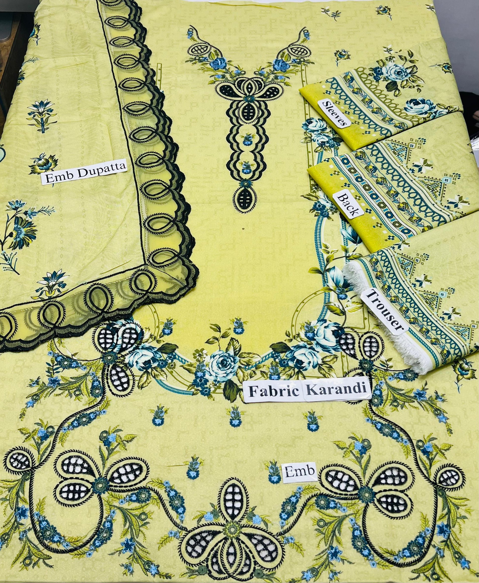 Step into effortless elegance with this Mirakhi 3-piece unstitched suit.