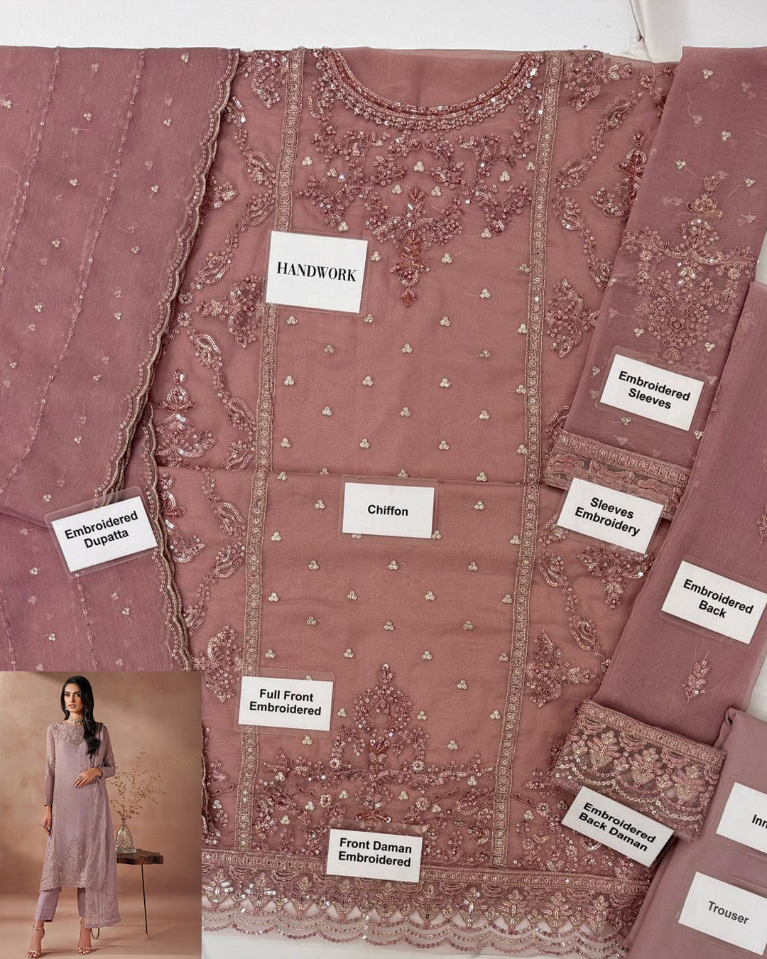 Front (Chiffon): Embroidered with Addawork