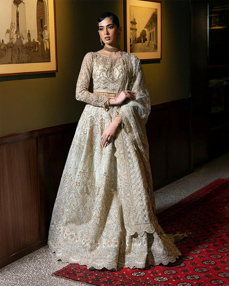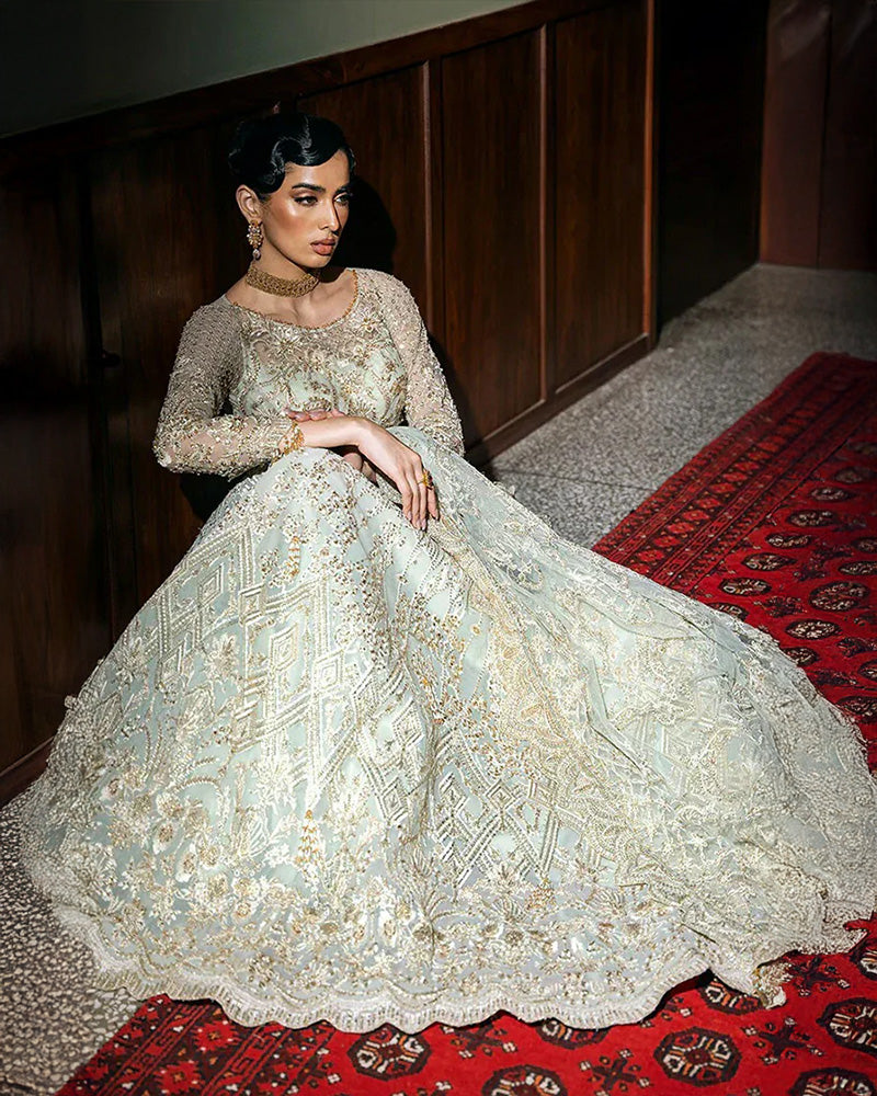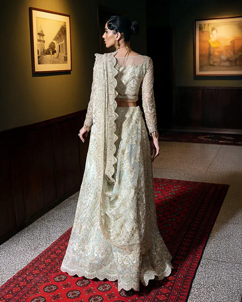 Bring sophistication and grace to your festive wardrobe with this luxurious organza ensemble. Featuring an embroidered and embellished front, detailed kali panels, and an intricately crafted dupatta, this design is perfect for weddings and formal occasions. Its premium craftsmanship and timeless silhouette make it a true statement piece.