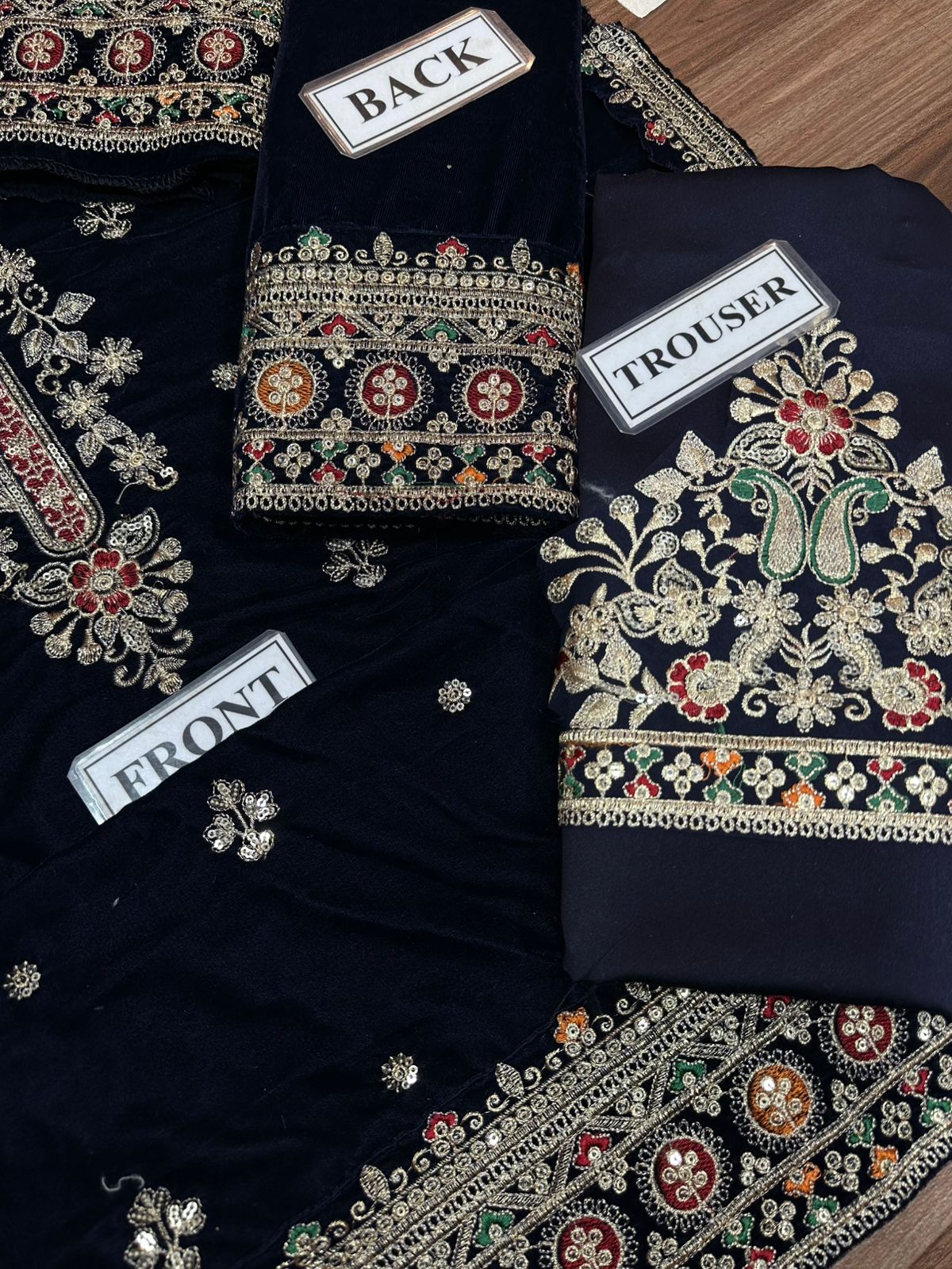 Step into timeless luxury with Charizma’s Velvet Sequence Collection — a masterpiece of elegance, sophistication, and warmth. This unstitched ensemble perfectly balances royal velvet, airy chiffon, and soft silk, making it the ideal choice for winter festivities, weddings, or evening wear. Each piece reflects Charizma’s signature artistry — graceful, luminous, and effortlessly regal.
