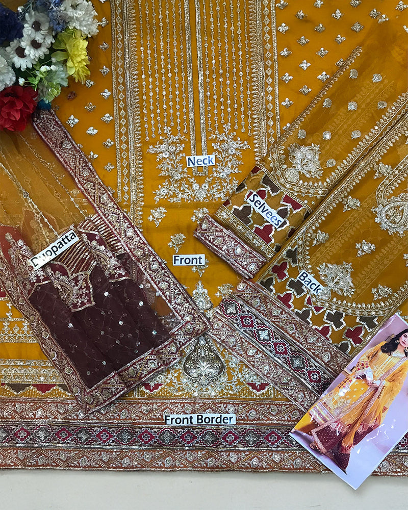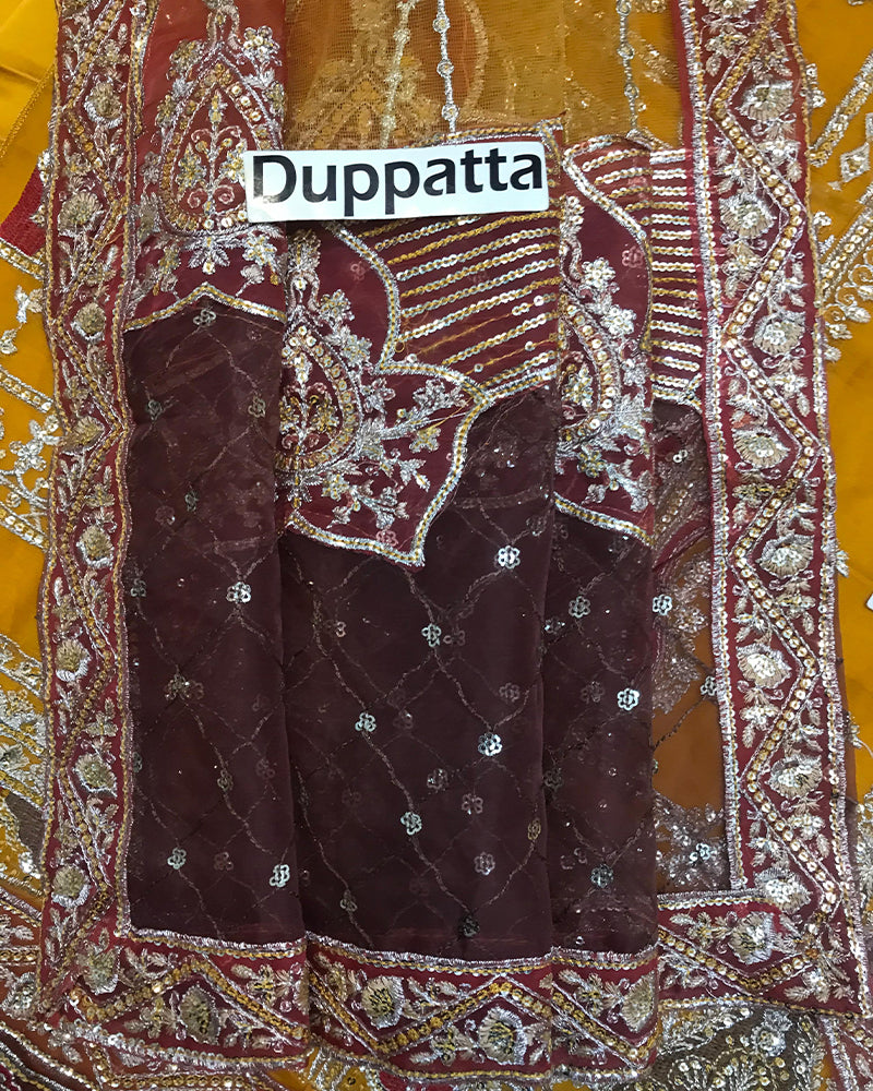 Heavy Embroidered Net Dupatta with 2-Side Embroidered Cut Work Pallu and 4-Side Embroidered Border (Ready to Wear)
