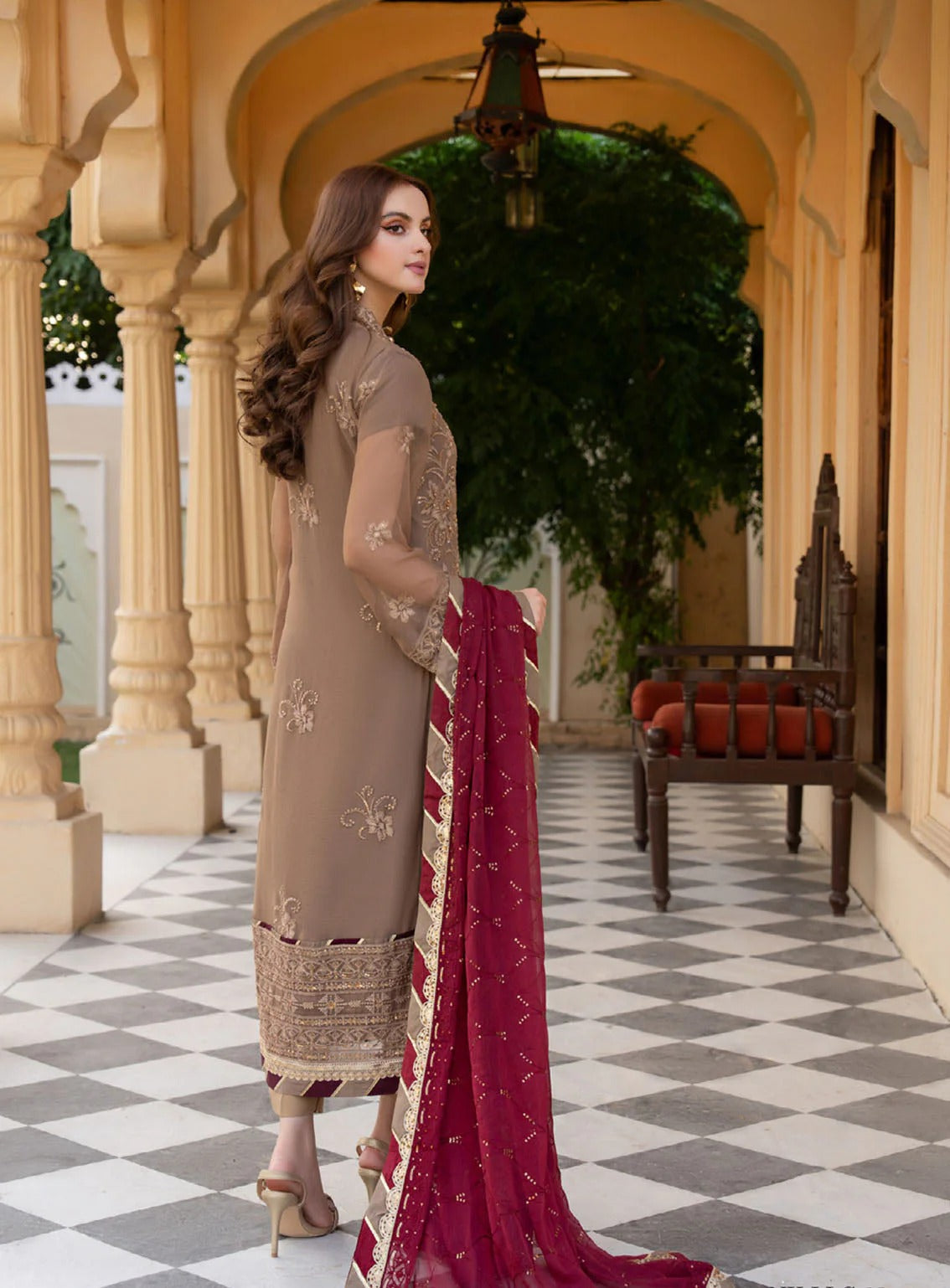 Coordinated chiffon dupatta with subtle sequence detailing.