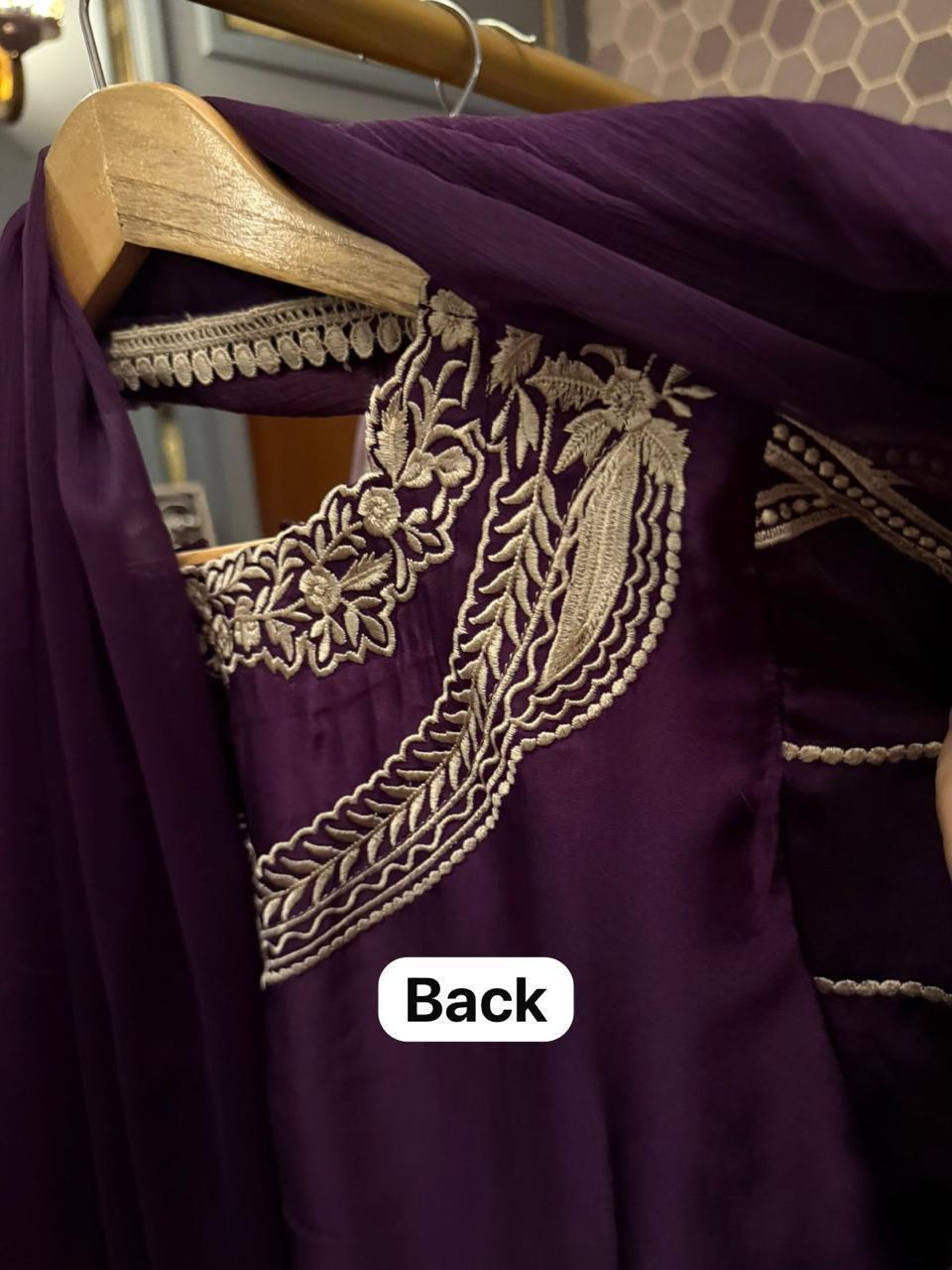 Step into a world of timeless elegance with this silk embroidered stitched outfit — designed to combine luxury, comfort, and intricate artistry. Crafted for women who appreciate classic sophistication, this ensemble is perfect for festive gatherings, semi-formal events, and celebratory occasions. Every detail is thoughtfully designed to highlight elegance while maintaining effortless wear ability.