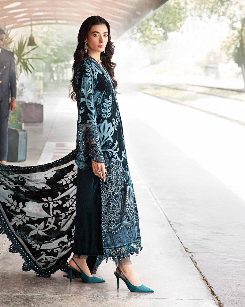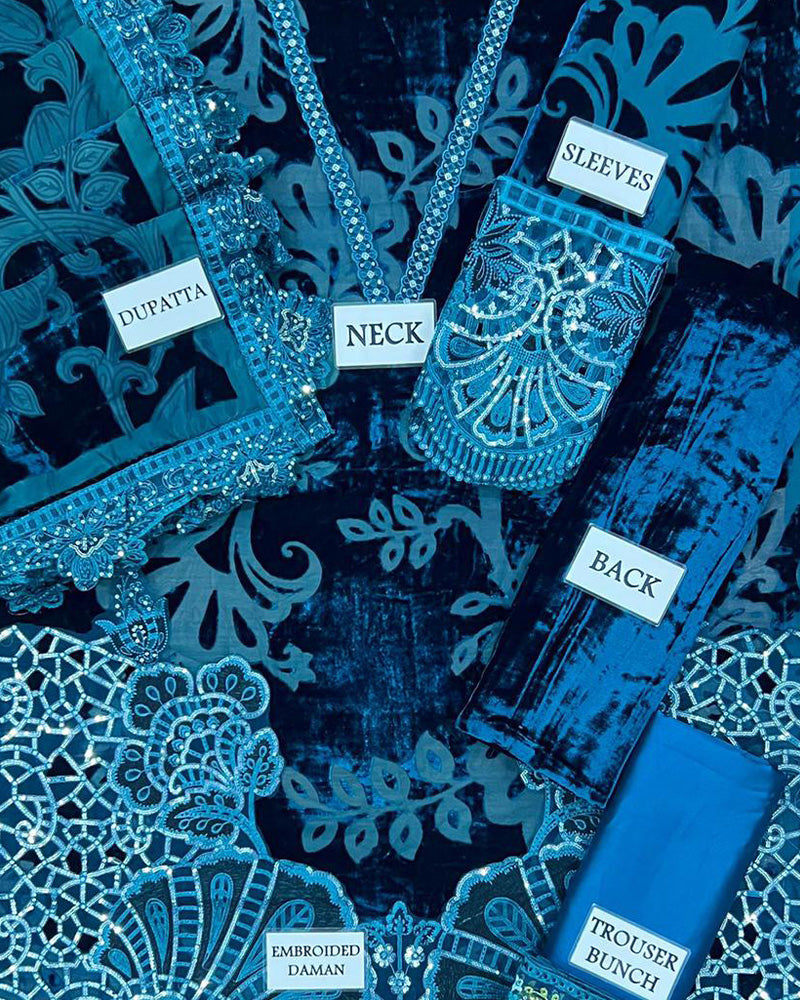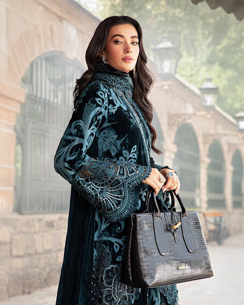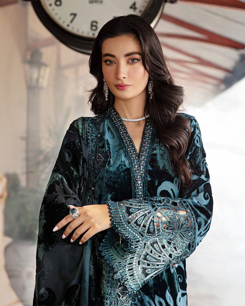 The Maria B Velvet Palachi Collection 2025 redefines festive luxury with its exquisite craftsmanship and timeless elegance. Crafted from rich palachi velvet and detailed with intricate sequin embroidery, this outfit is perfect for winter festivities, weddings, and evening occasions.